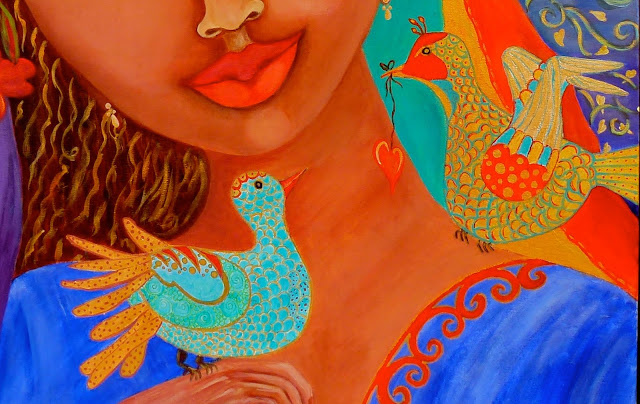 Donna, she is so beautiful. I love the colors and those birds. I am completely in love with your paintings. You have such a gift my dear.